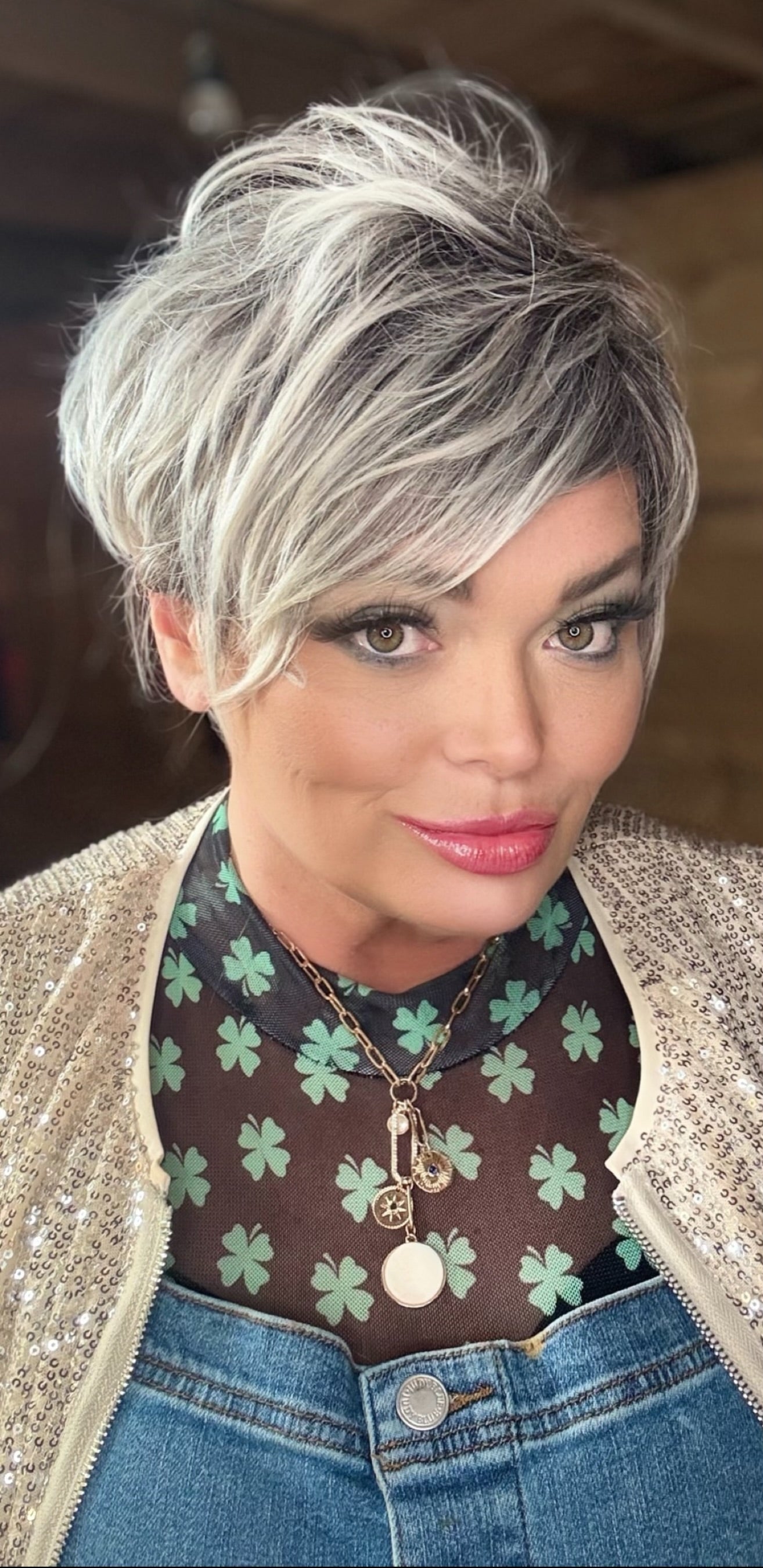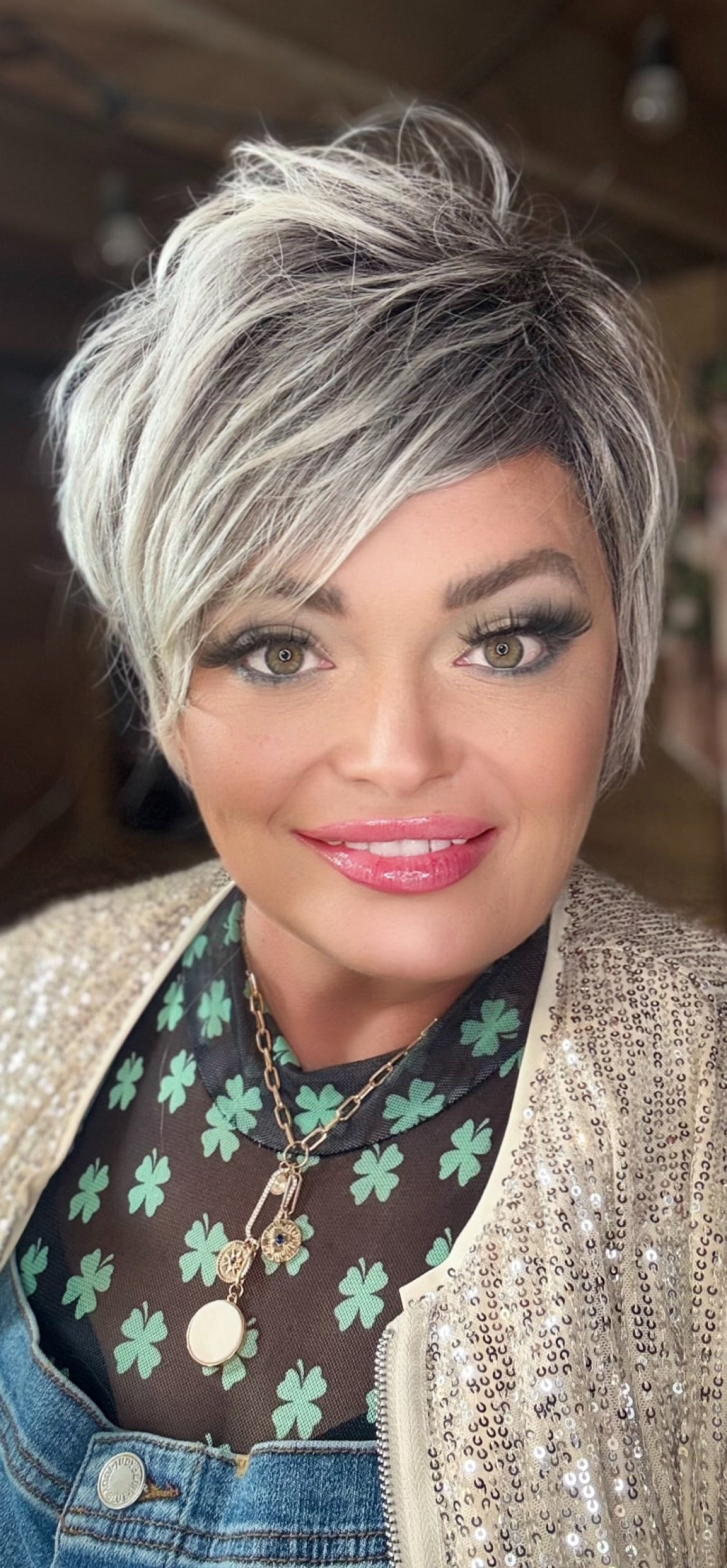 Introducing CHELSEA, a premium heat resistant synthetic fiber full machine made cap with an adjustable strap for a comfortable fit. Its layered pixie cut and stunning gray silver platinum blend make it a stylish and versatile choice. Enjoy the benefits of a basic cap with a touch of elegance.