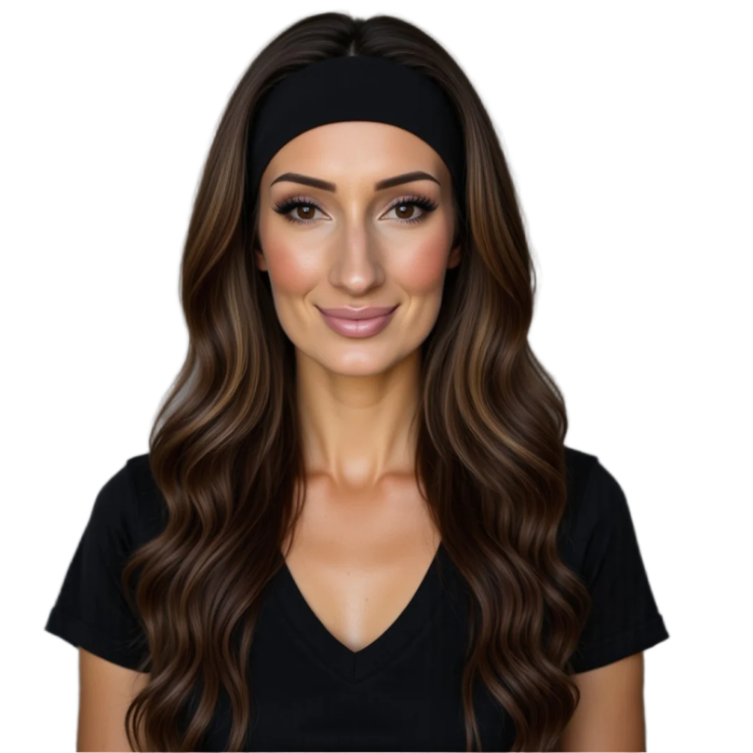 Description: Mocha Body is all about rich warmth and volume. The chocolate and caramel tones paired with full waves bring softness and drama in one easy-to-style headband wig.