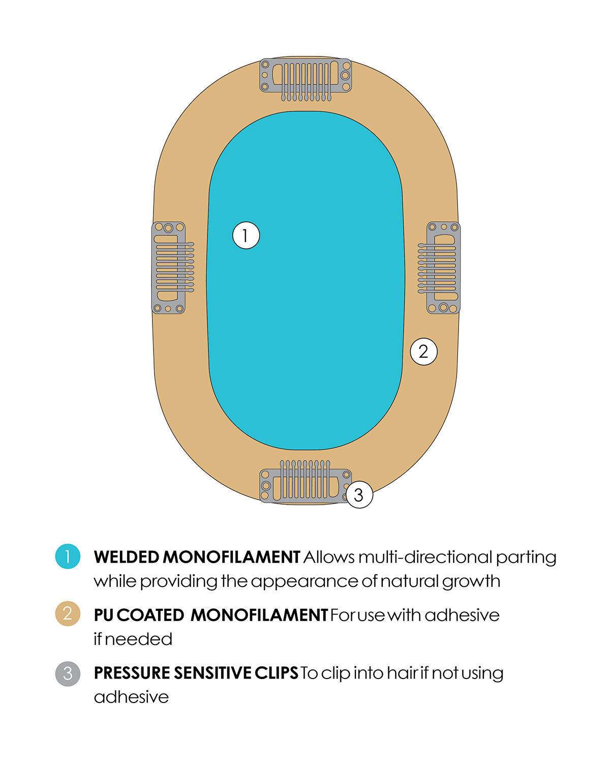 EasiPart Medium is ideal for those experiencing beginning to mid/progressive hair loss, and want more coverage and volume. This topper features more density, a wider base for more all-over coverage, and a larger polyurethane perimeter allowing easier application of Tape N Go or adhesive.