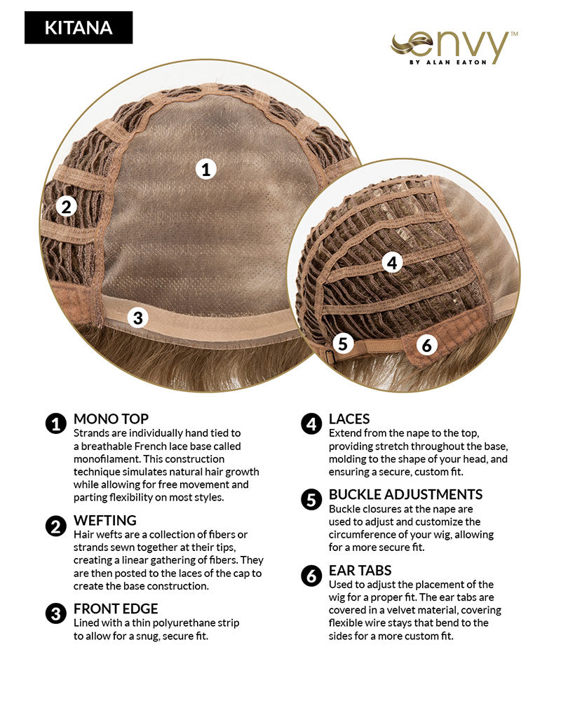 A full Monofilament Top creates the appearance of natural hair growth from the scalp which adds to the natural appearance and believability of the wig.
