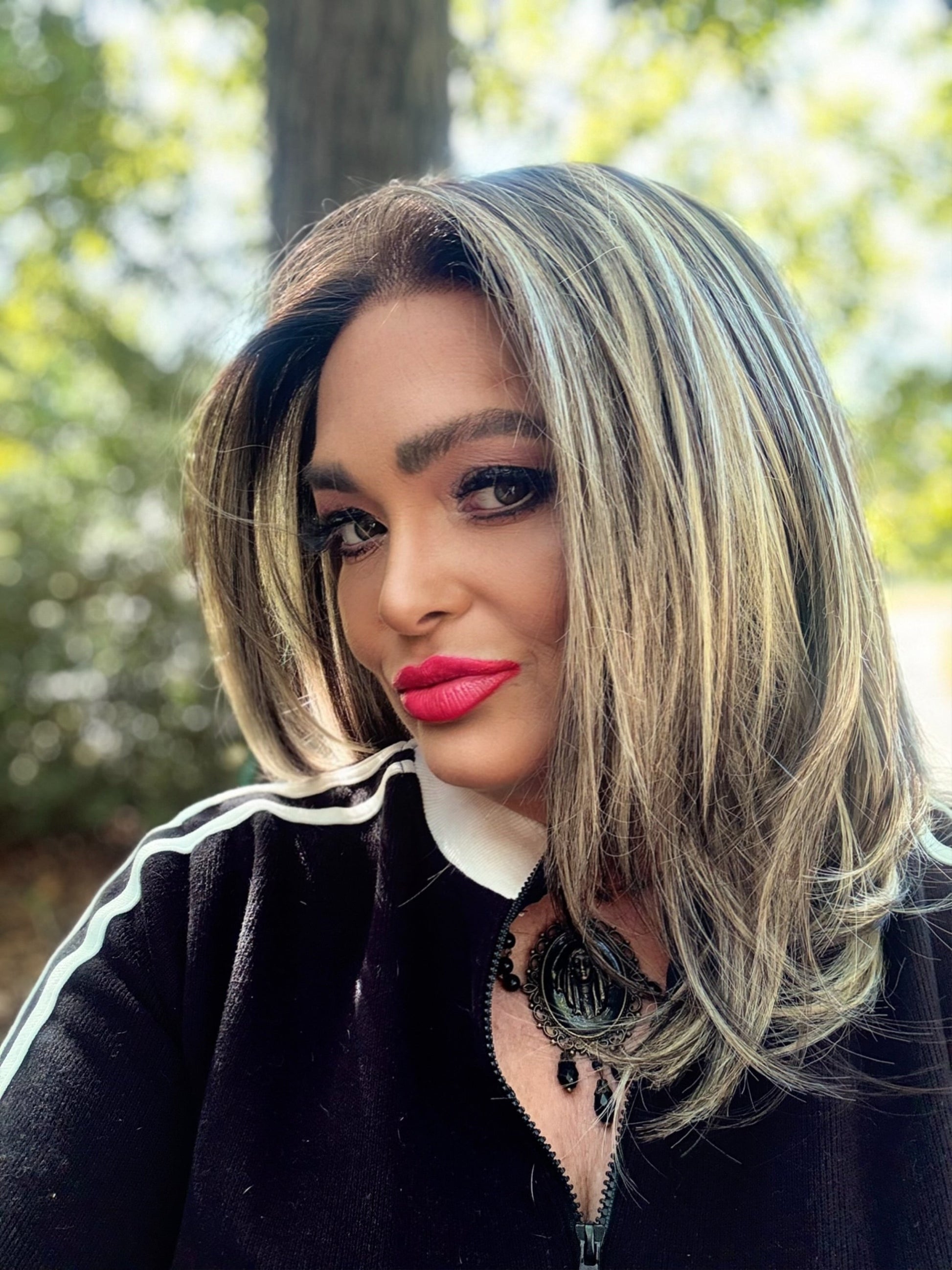 The LONDON wig features a 13x3 pre-cut lace front with free parting for versatile styling. Crafted from premium heat-resistant synthetic protein fibers, it offers durability and a natural look. Measuring 14 inches, this style includes trendy curtain bangs and a long bob (LOB) cut, showcased in a stunning brown and blonde mix. Adjustable straps and a standard cap size ensure a secure, comfortable fit for everyday wear. Ideal for those seeking a high-quality, easy-to-style synthetic