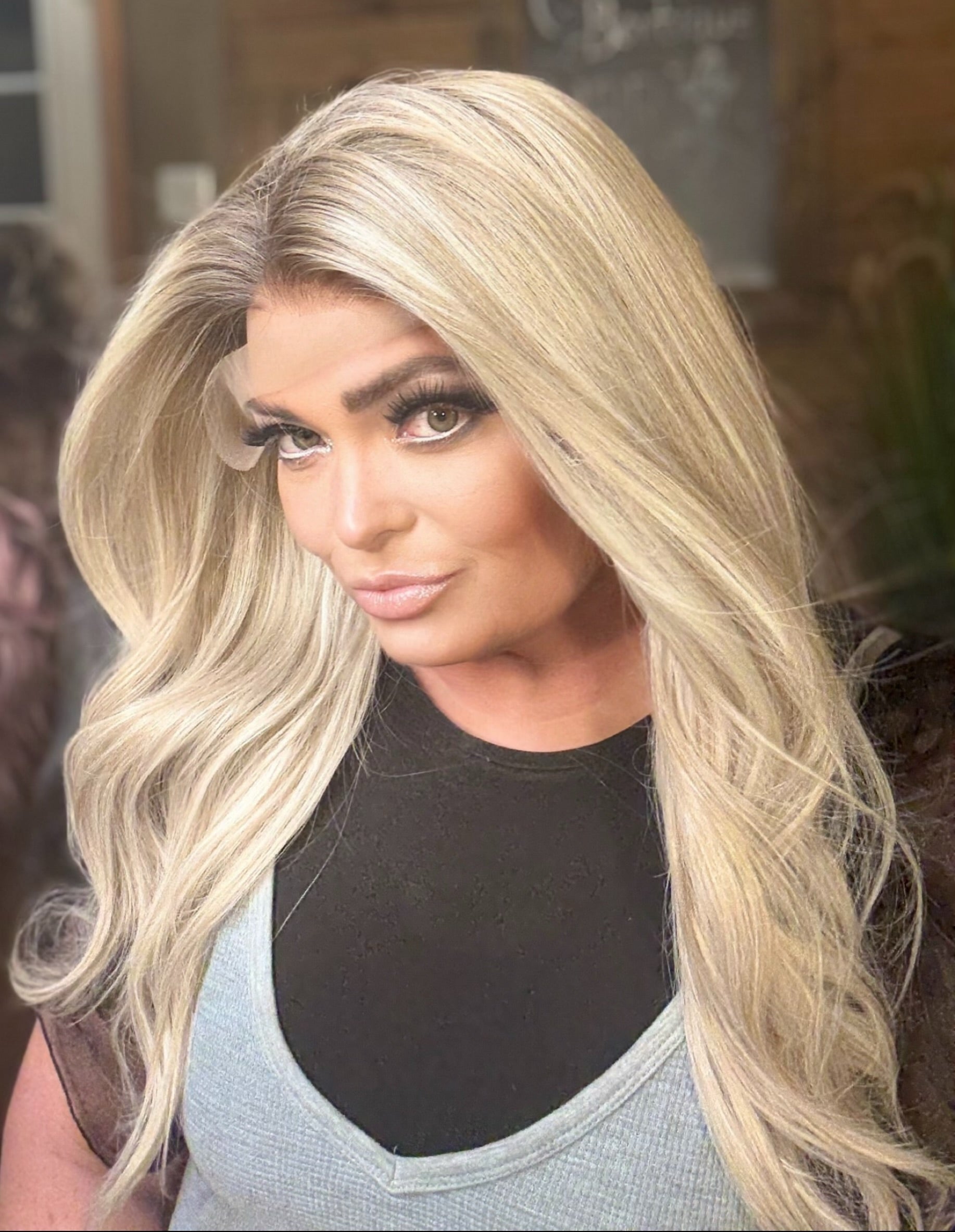 MARCI is a expertly-crafted lace front wig that will transform your look with its 24 inch loose curls and stunning blonde color. Made with premium heat resistant synthetic fiber, it features long layers for a natural look. The adjustable straps and standard cap size ensure a comfortable fit. Customized by WBR for the perfect balance of cool tones, blonde highlights, and money pieces.