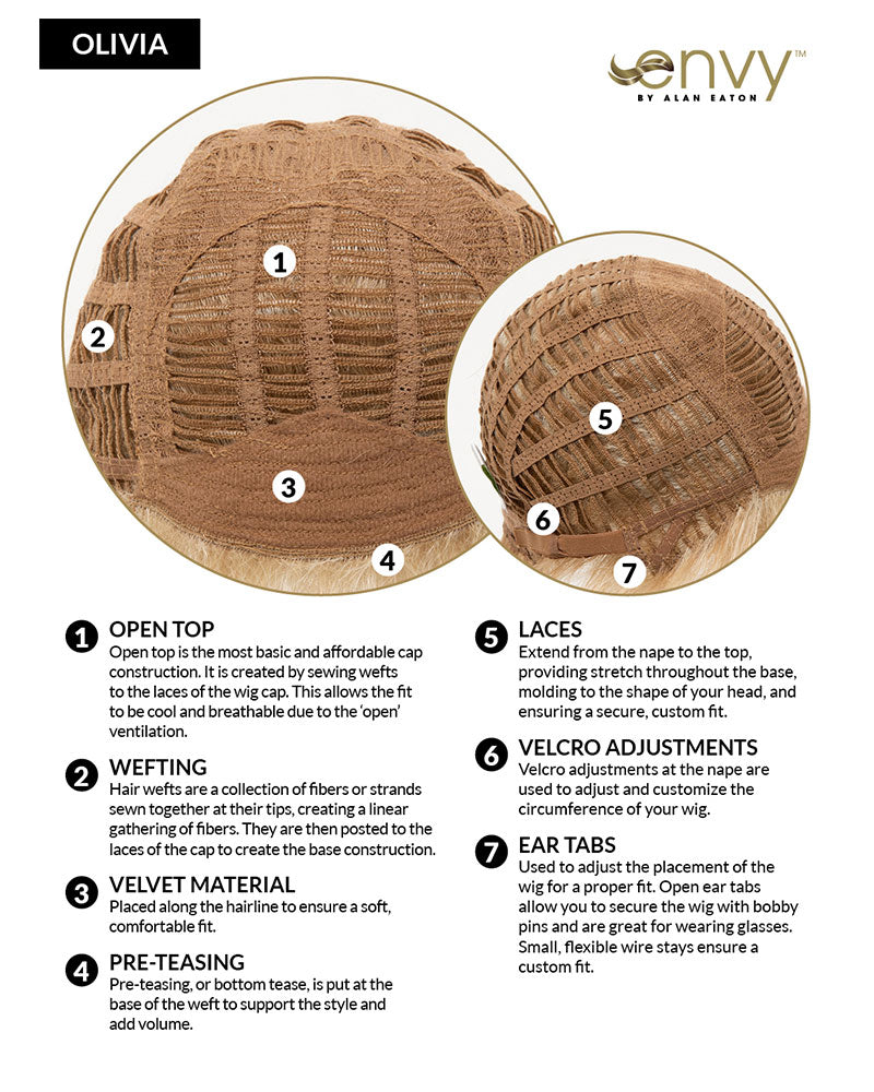 There's nothing not to love about Olivia's masterfully spiked layers. Texture rules the day with this modern play on the classic nape-hugging pixie. Your scalp will enjoy the gossamer lightness of the capless construction, while the versatility of our heat-friendly Envy hair blend will appeal to your creative side. Heat set, curl, or straighten to make Olivia all your own!