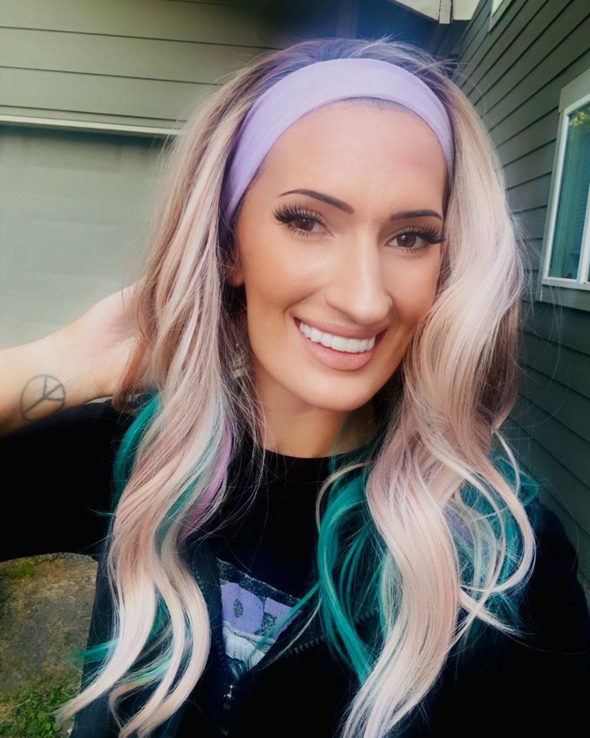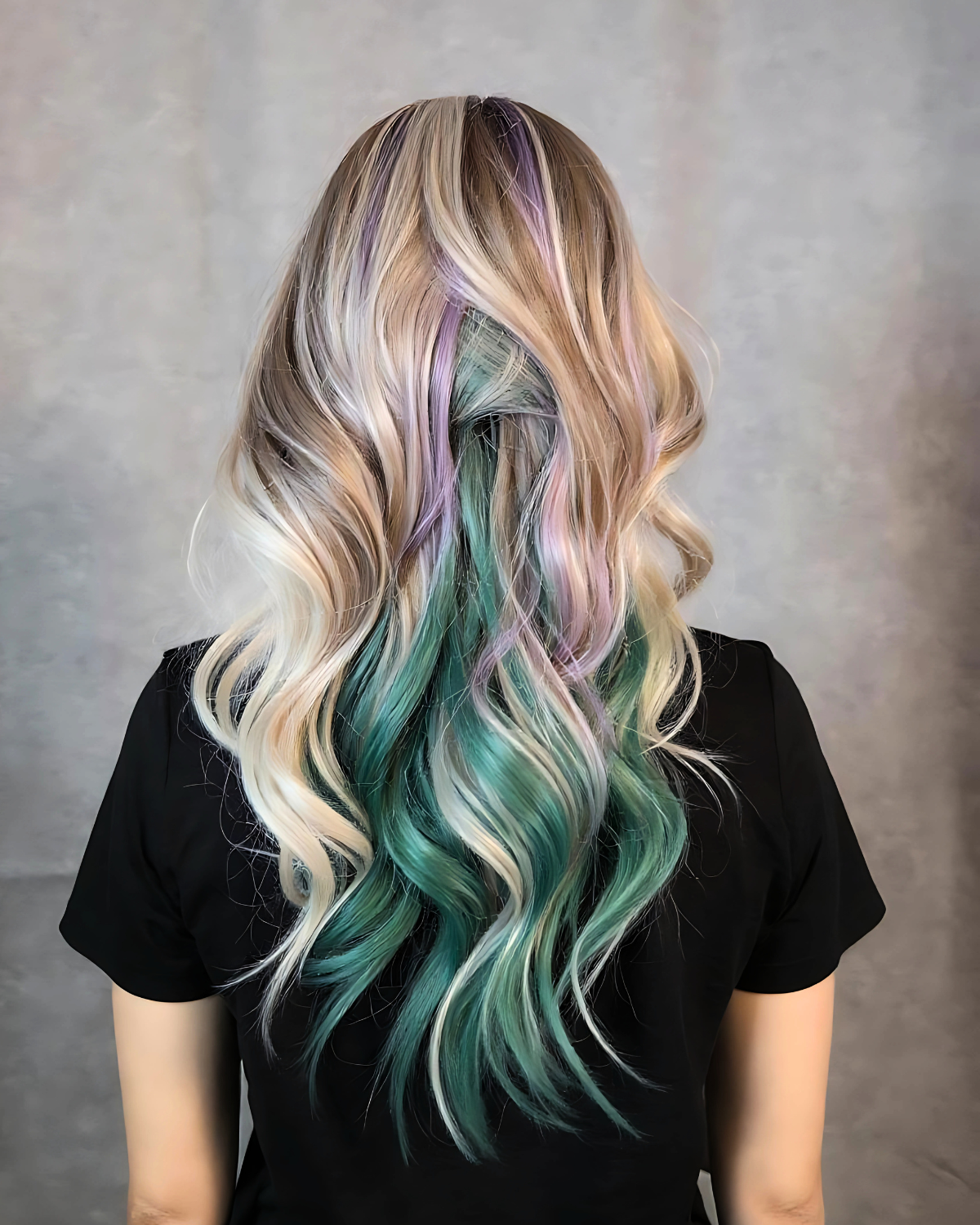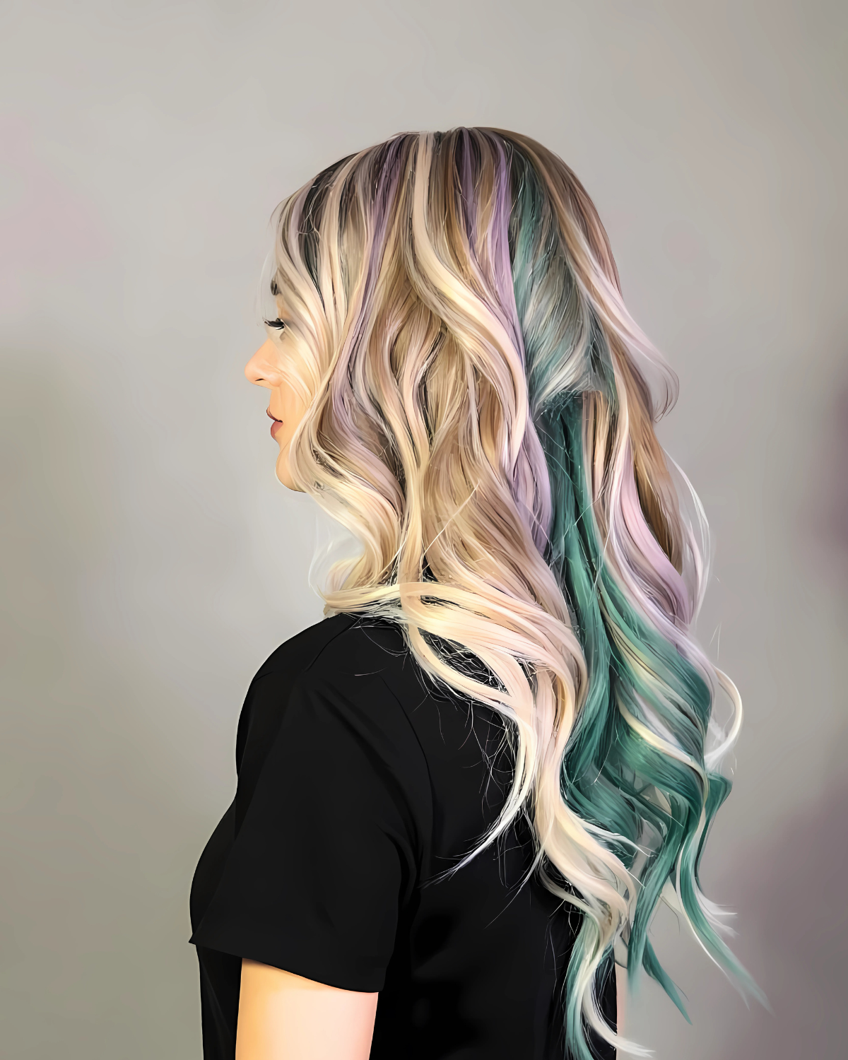 Color: Champagne Blonde with Pastel Teal & Lilac Ends