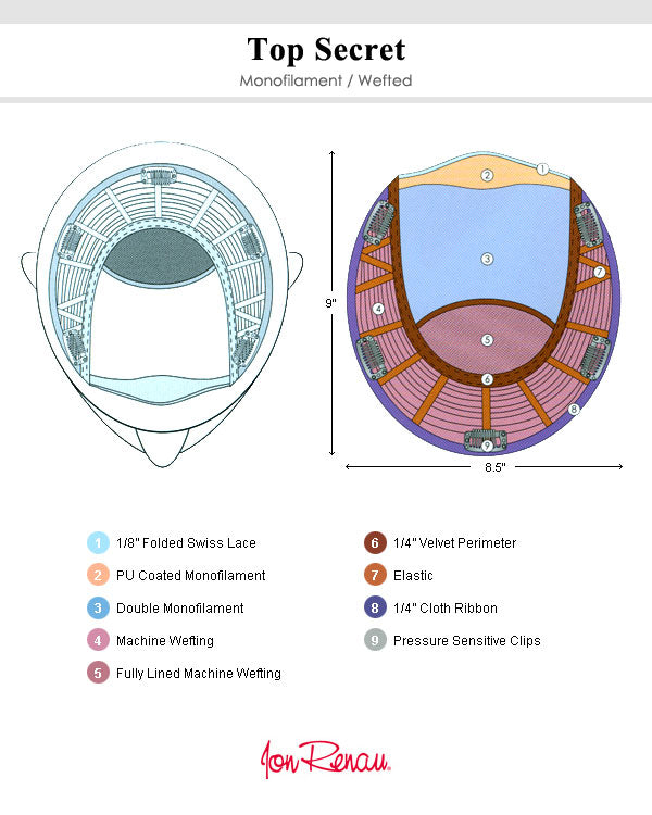 This clip in topper integrates easily with your own hair at the crown to add body and volume. The 9-inch monofilament base is virtually invisible.