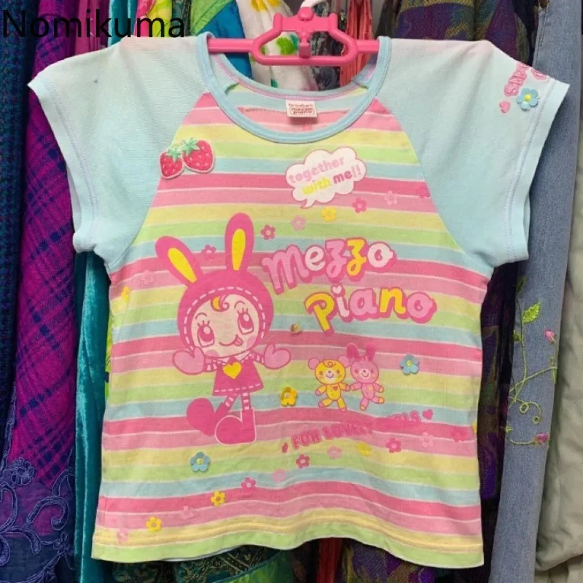 Channel nostalgic vibes with this Japanese Y2K-inspired striped crop top, designed to keep you looking effortlessly stylish and cute this summer! Featuring soft, breathable fabric and a flattering cropped fit, this tee is perfect for any casual outing, lazy day hangouts, or showing off your unique kawaii flair. Its bold stripes and trendy cut will make you stand out while keeping it fun and playful.