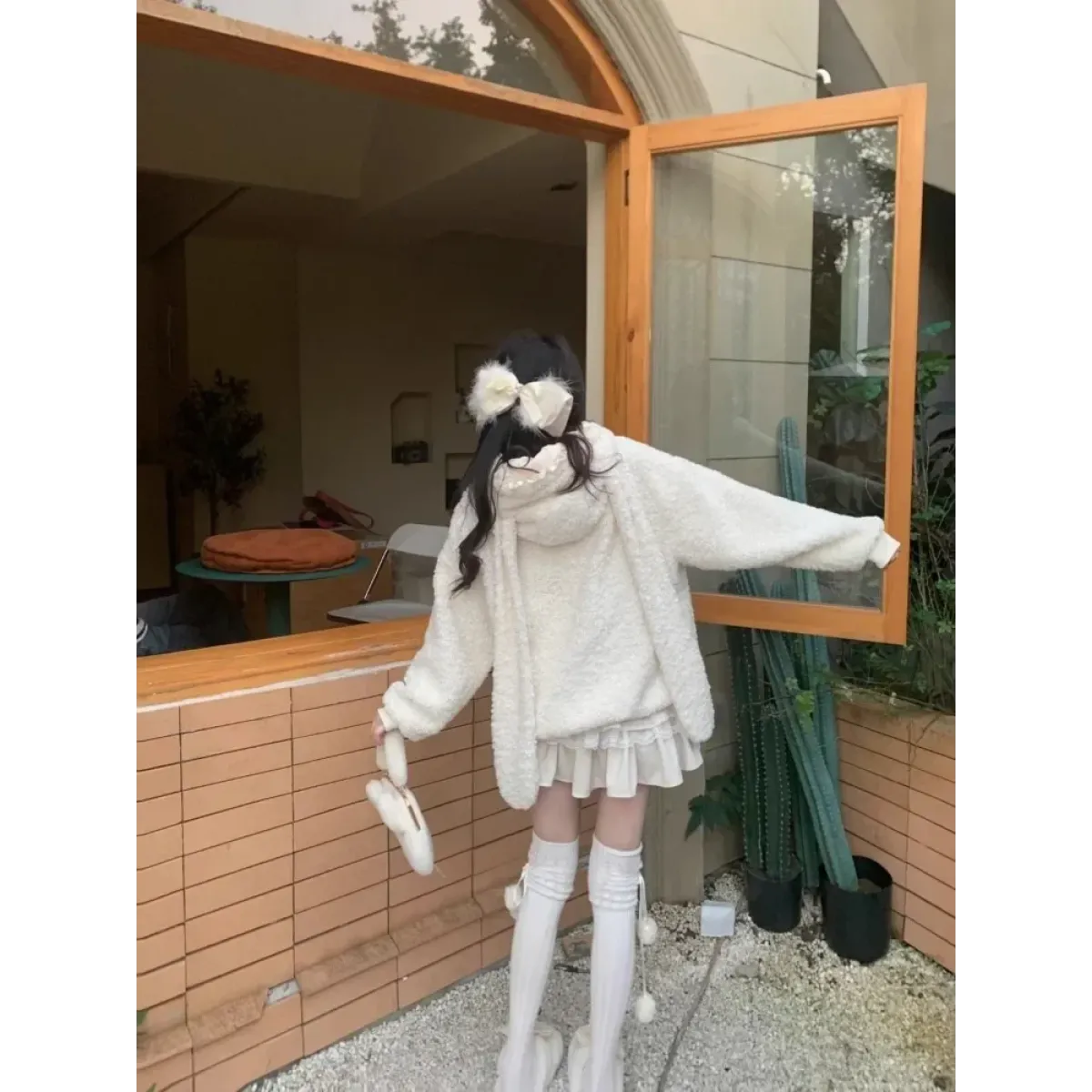 White Bunny Hoodie – Soft Lamb Wool Fleece Pullover Winter Style