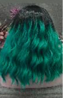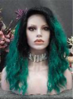 Expertly crafted with a lace front and 16 inch wavy bob, the WITCHES WHISPER wig features a striking black and green ombre color. Made with premium heat resistant synthetic material and equipped with adjustable straps, it offers both style and comfort. Available in a standard cap size.