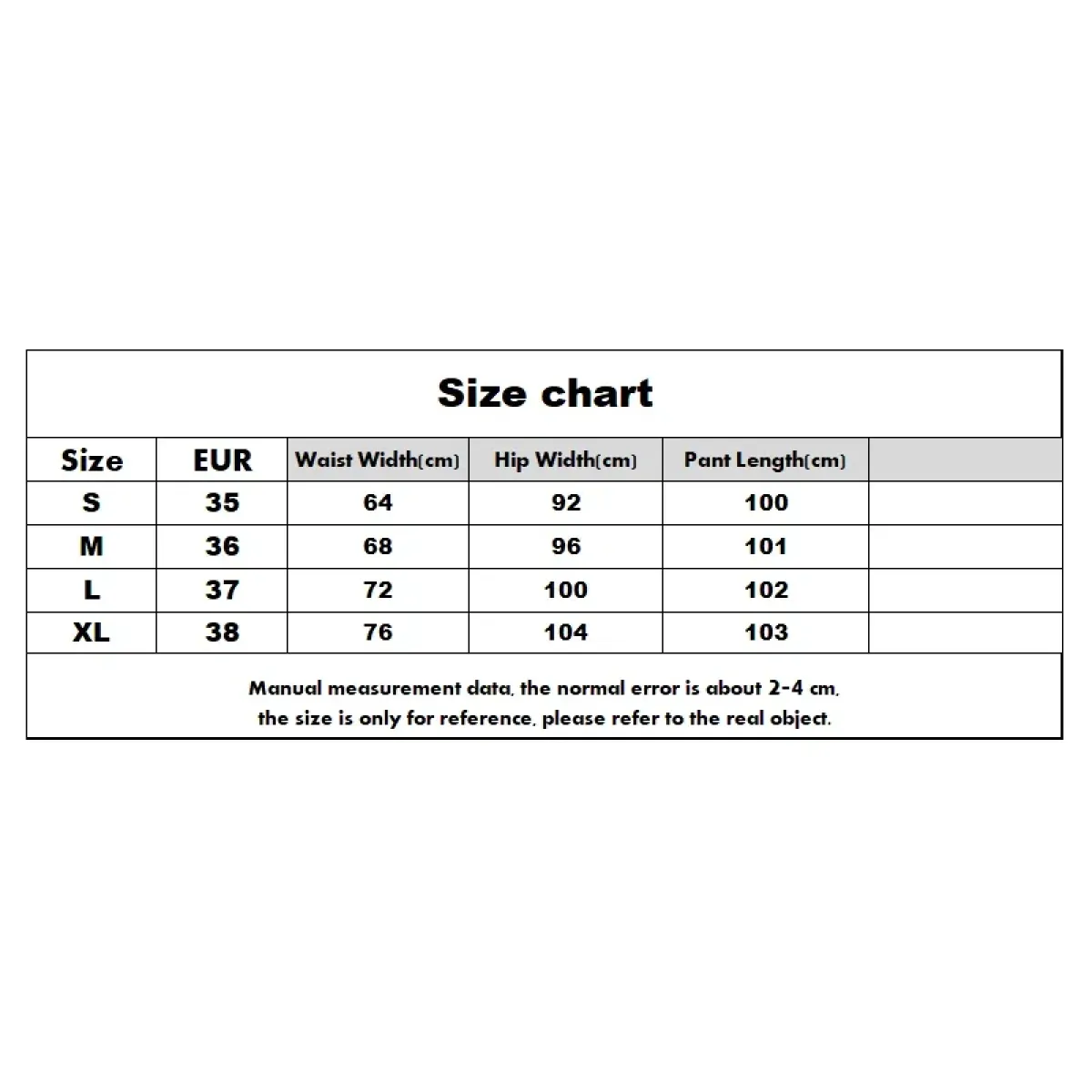 | Size | Waist Width (cm) | Hip Width (cm) | Pant Length (cm) |