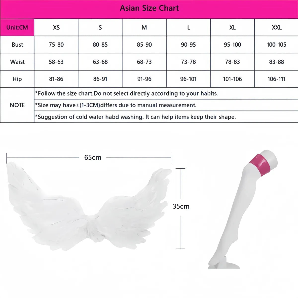Note: Accessories (wig and wings) are free size and compatible with all sizes. Sizes are based on Asian standards and may run smaller; consider sizing up for the best fit.