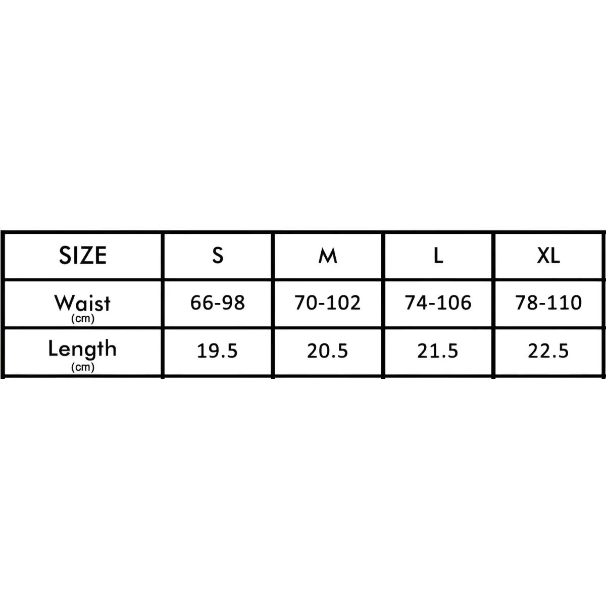 | Size | Waist (inches) | Hips (inches) |