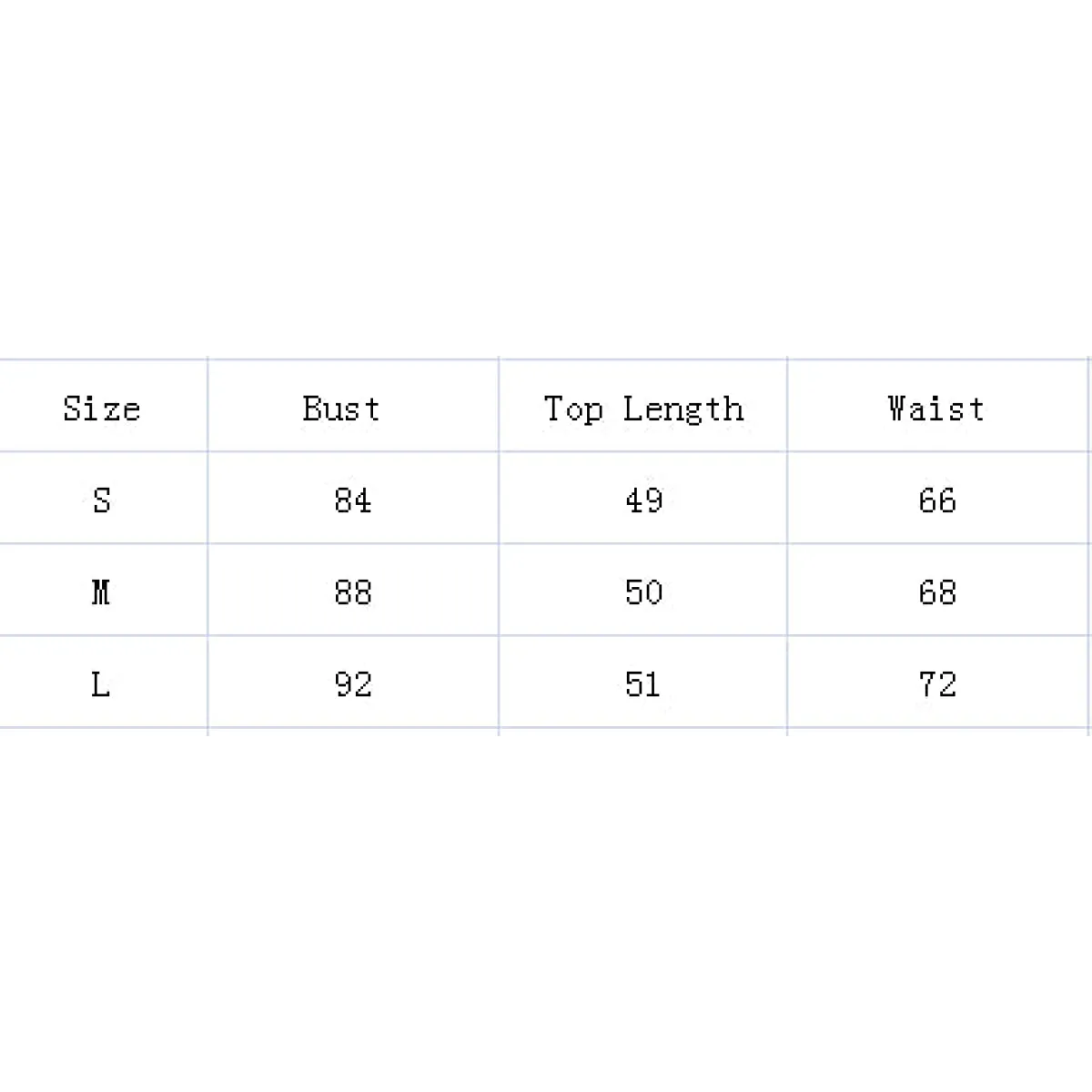 | Size | Bust (cm) | Top Length (cm) | Waist (cm) |