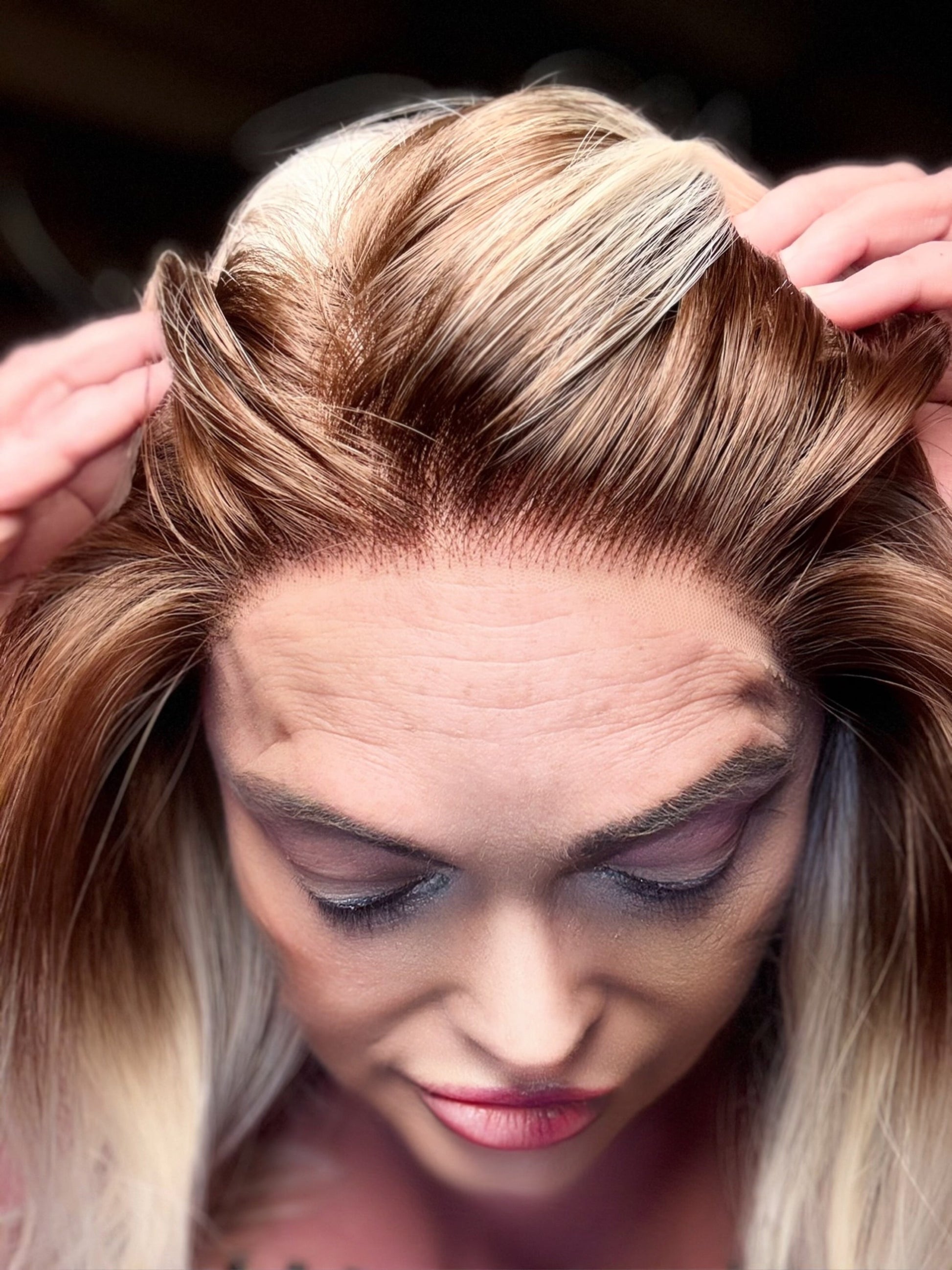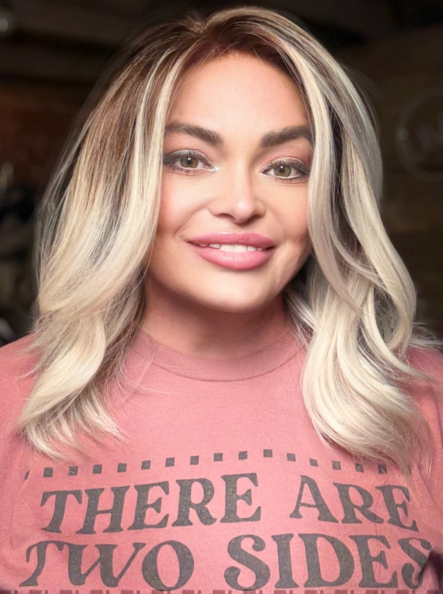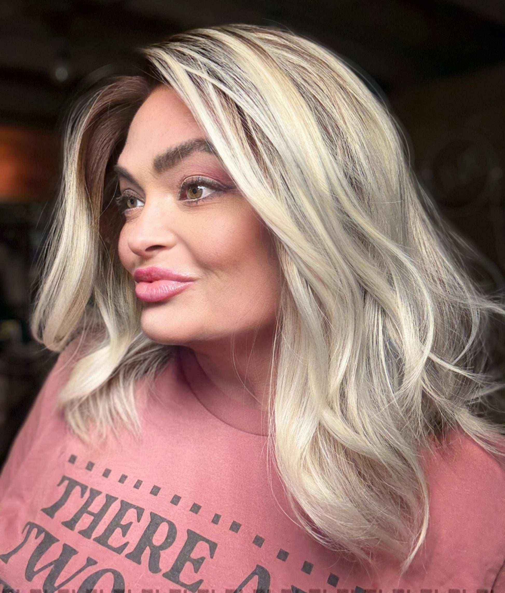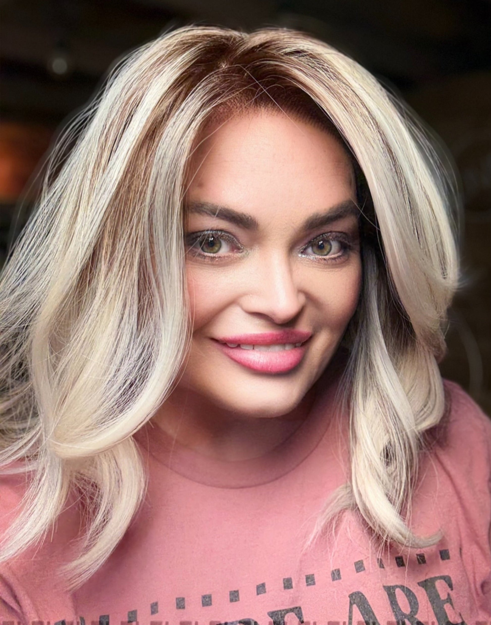 As an expert in the beauty industry, I present ANNABET - a 14 inch loose wave lace front with a free part and adjustable straps. The sterling blonde mix with low lights creates a cool and neutral tone for a custom WBR look. Pre-order now for ultimate hair customization.