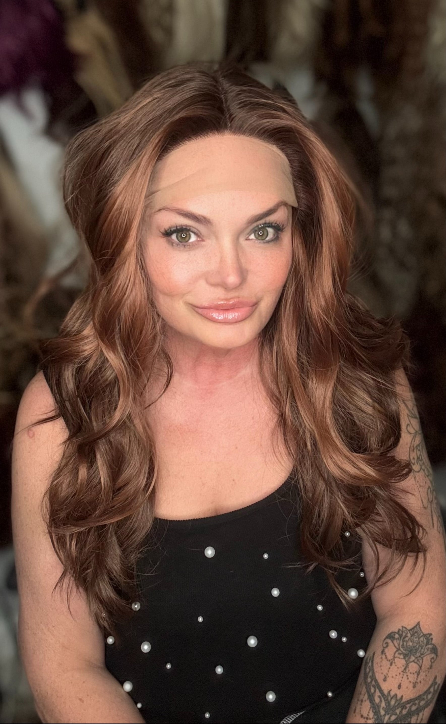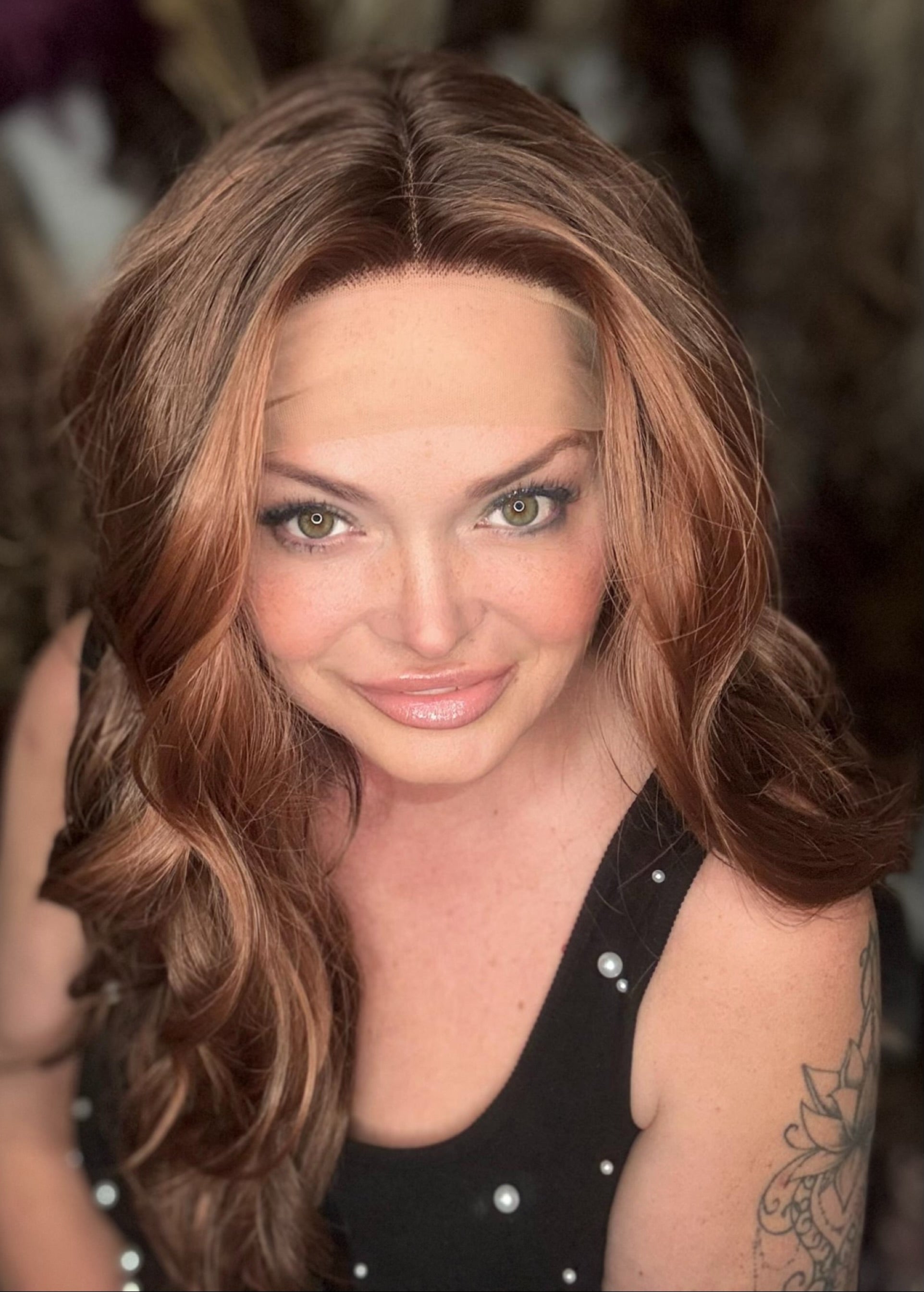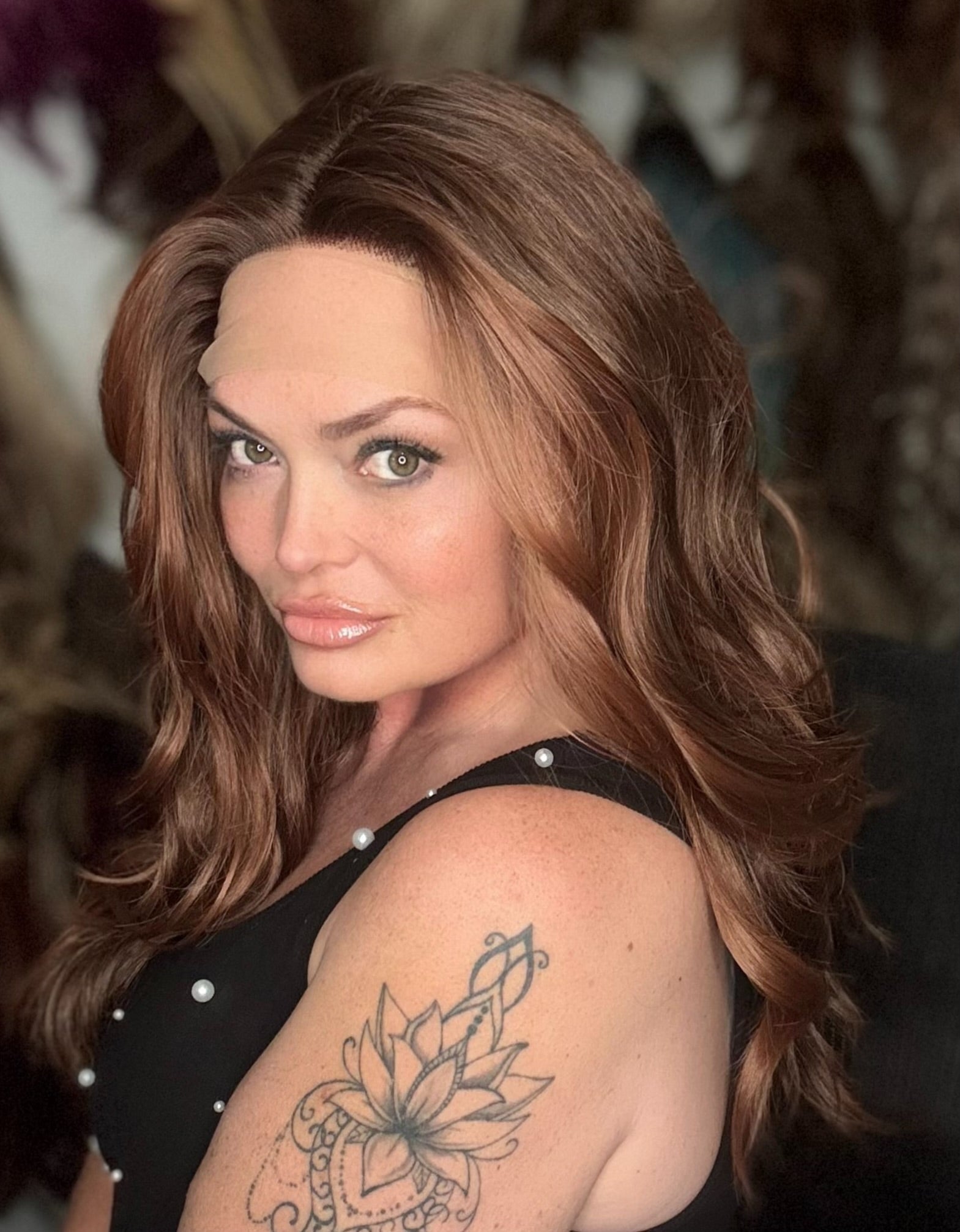 APPLE offers a sleek, natural look with its lace front T part and 20 inch loose curls. Made of premium, heat-resistant synthetic fiber, this low density wig is customizable with adjustable straps and a standard cap size. The stunning brown Auburn blend adds a touch of elegance.