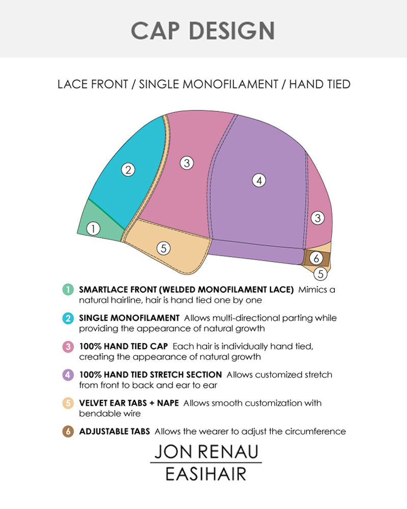 Cap Design: The Smart Lace? front, extending to the ear tabs, provides a seamless, natural appearance.