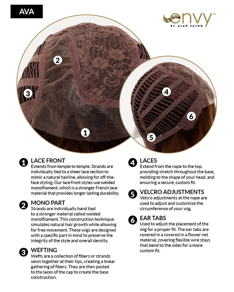 Looking for a longer do? Ava's lines are sleek with a touch of allure. You will love the styling options of these lavish tresses curl them, straighten them, or add a few waves, our exclusive Envy hair blend allows for heat styling. Even better, the lightweight capless construction keeps your scalp cool and cozy for year-round comfort.