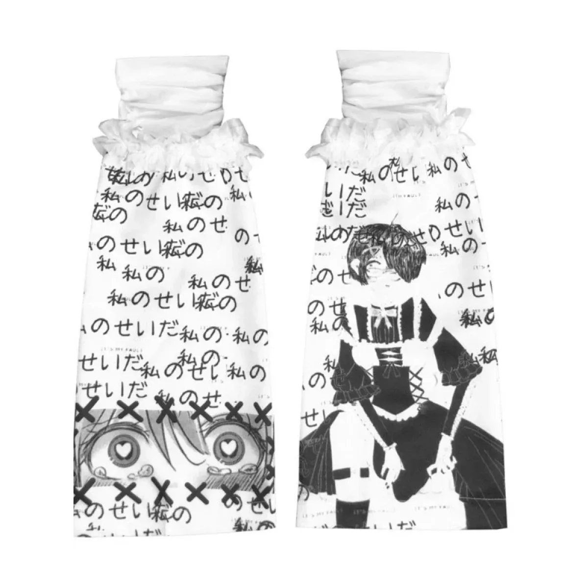 Black & White Harajuku Leg Warmers – Gothic Print & Lace Trim