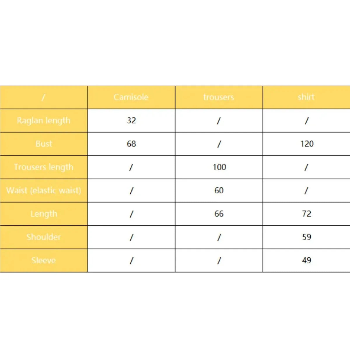 | Trousers Length | 100 |