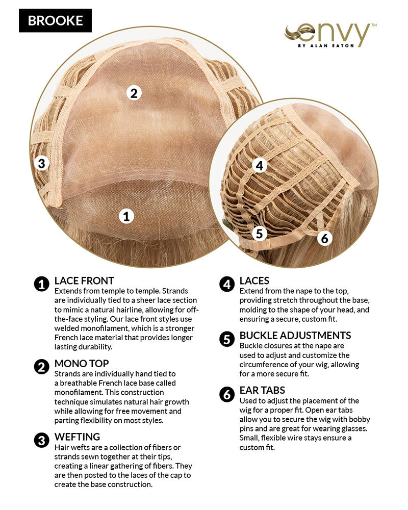 Brooke by Envy offers our Mono Top Lace Front construction on this long sultry and sexy styling. Long flirty bangs can be Sides swept or worn off the face. Lightweight and luxurious this mono top construction suggest the fibers are growing straight for your own scalp.