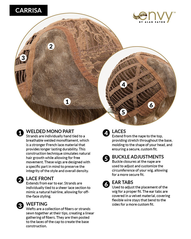 Add a heaping helping of sass and fun to your look with Carrisa. Carefree curls captivate and charm while the tousled look keeps you feeling fresh and young. You will tumble head over heels in love with the Lace Front Mono Part construction and soft breathable cap that fits securely enough for head tossing galore.