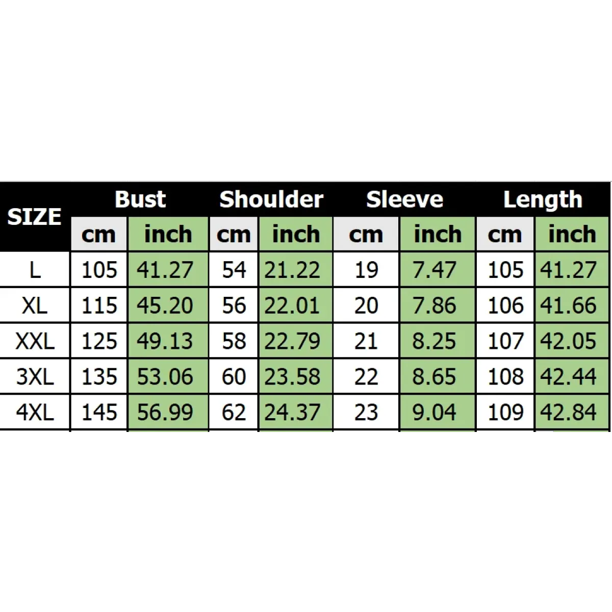 | Size | Bust (cm) | Shoulder (cm) | Sleeve (cm) | Length (cm) |