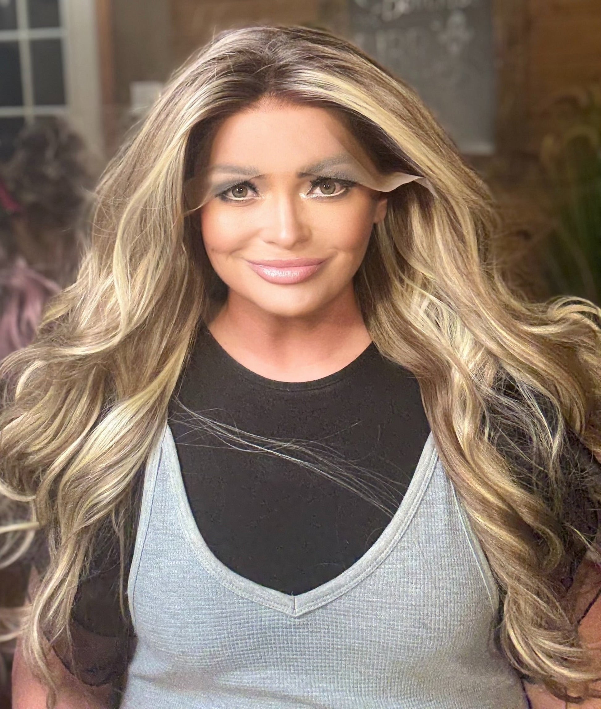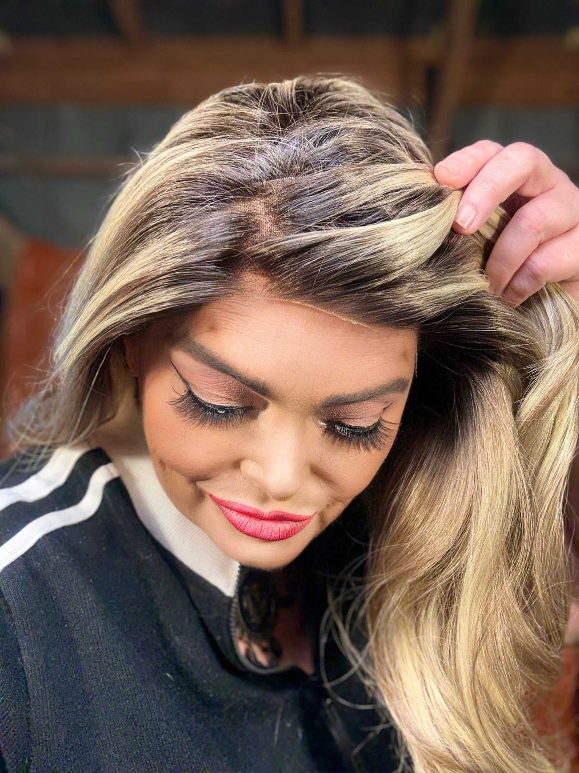 Experience effortless style with SADIE. Boasting a 13x4 pre-cut luxe lace front and free part, this wig offers versatile styling options. Made with premium heat resistant Futura synthetic fiber, SADIE features stunning 24 inch loose curls and a mix of warm and cool blonde tones, rooted for a natural look. The adjustable straps and standard cap size ensure a comfortable fit, customized by WBR.