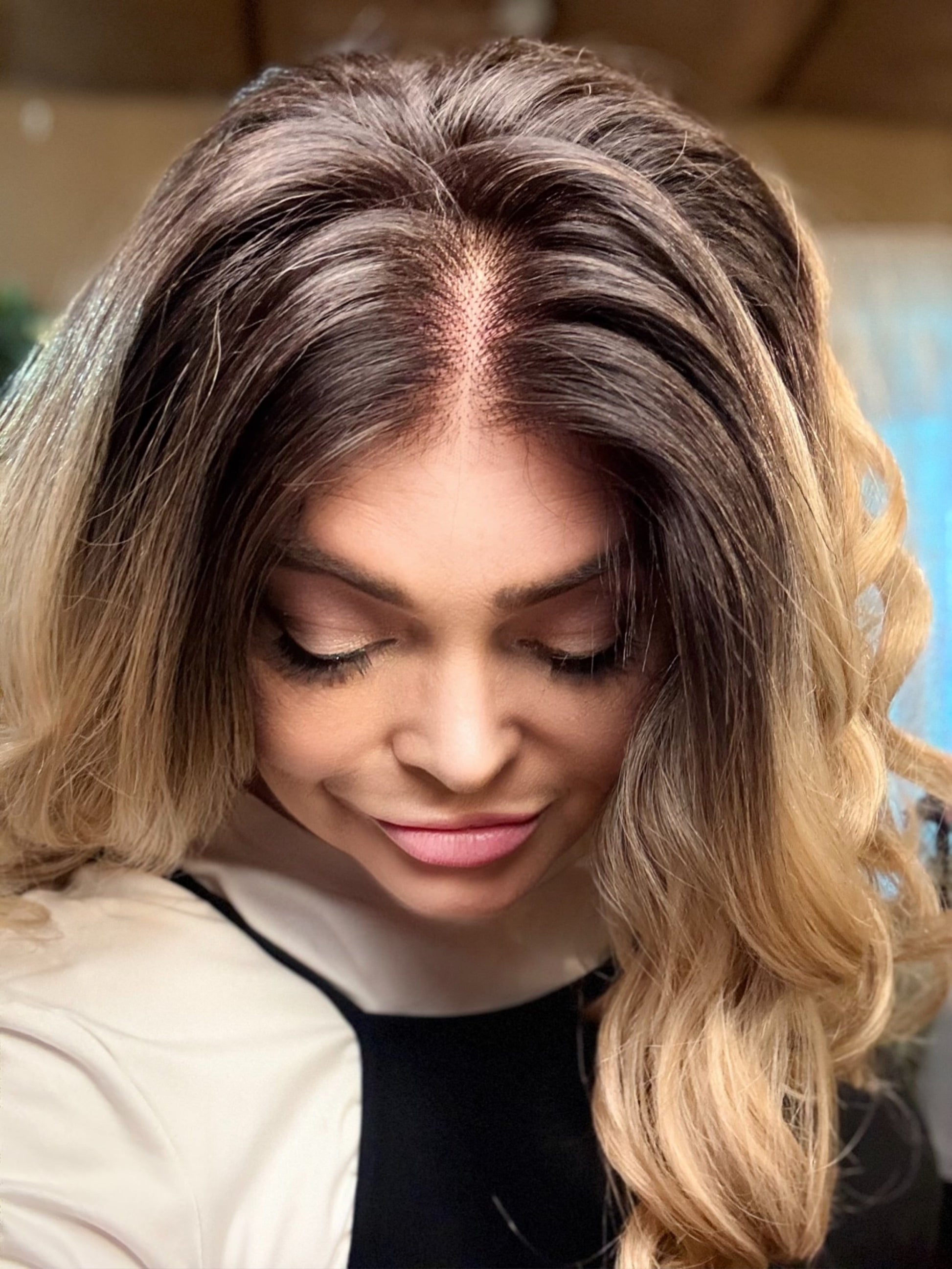 SHAE offers a stunning 13 x 6 darted lace front with a free part for ultimate styling versatility. Made with premium heat-resistant synthetic fiber, this 16 inch loose curl wig features a beautiful brown to blonde balayage. Its adjustable straps and standard cap size ensure a comfortable and secure fit.
